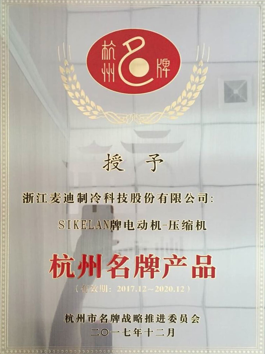 杭州市名牌產品證書