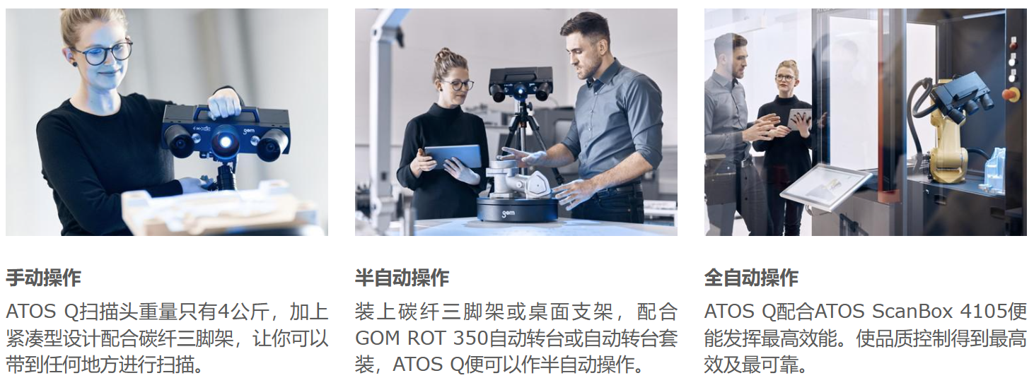 ATOS Q設(shè)計(jì)兼容性非常高,可以從手動掃描到配合ATOS ScanBox 4105作全自動掃描測量都能勝任。作為一款可靠的多功能掃描設(shè)備,可完美解決復(fù)雜的測量和檢測難題。