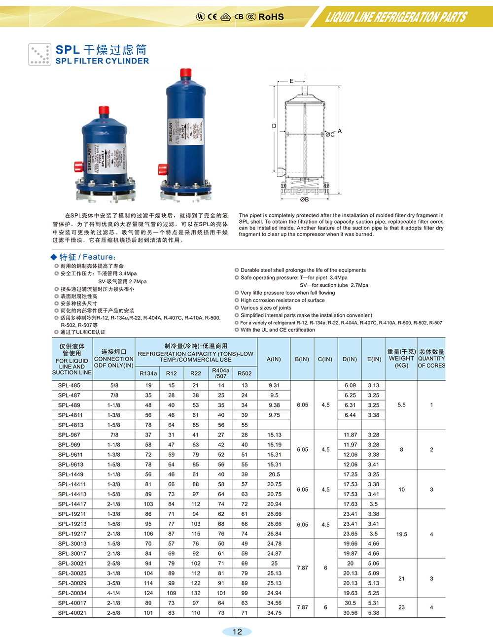 產品簡介:在SPL殼體中安裝了模制的過濾干燥塊后,就得到了完全的液管保護,為了得到優良的大容量吸氣管的過濾,可以在SPL的殼體中安裝可更換的過濾芯。吸氣管的另一個特點是采用燒損用干燥過濾干燥塊,它在壓縮機燒損后起到清潔的作用。