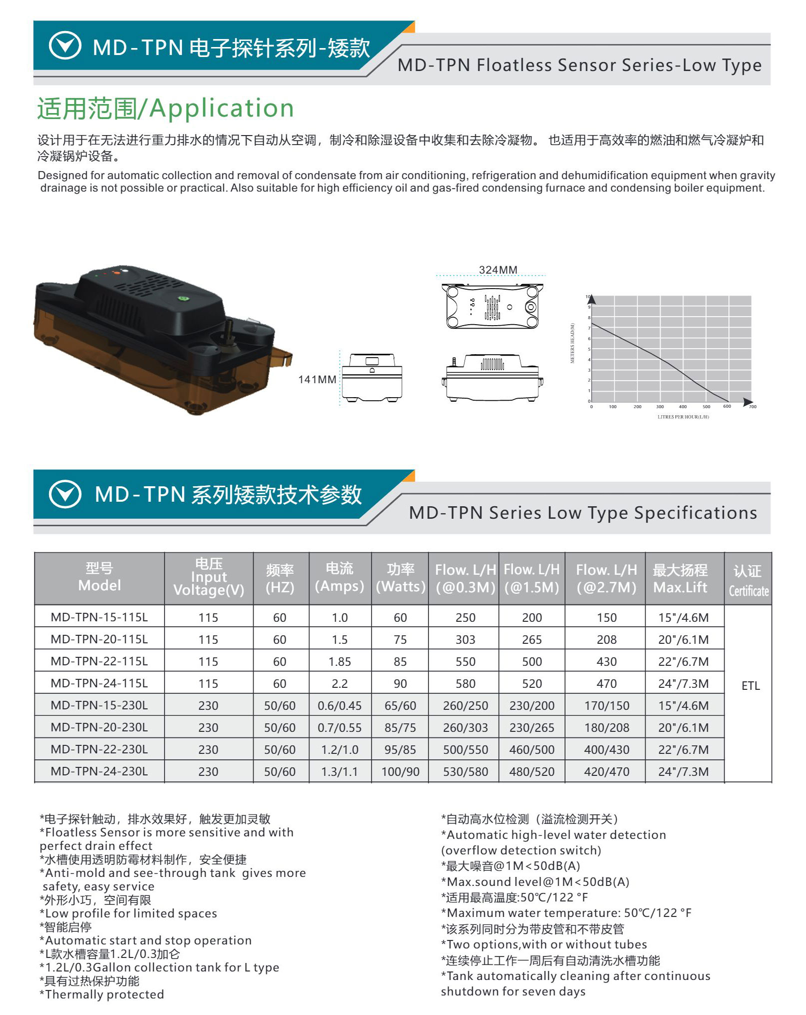設計用于在無法進行重力排水的情況下自動從空調,制冷和除濕設備中收集和去除冷凝物。也適用于高效率的燃油和燃氣冷凝爐和冷凝鍋爐設備。
